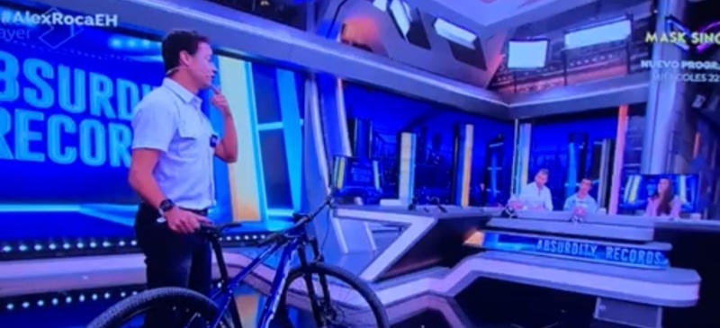 19 de mayo de 2023. Cristian Roberto López, profesor del Grado en Ciencias de la Actividad Física y del Deporte (CAFD) de la Universidad Isabel I, fue uno de los invitados en el programa de Antena3 ‘El Hormiguero’, el pasado lunes 15 de mayo. El profesor López realizó una exhibición de uno de sus récords Guinness, el de mayor tiempo sosteniendo una bicicleta en equilibrio sobre la barbilla. El docente participó en la sección llamada ‘Absurdity Records’ y Pablo Motos en colaboración de las hormigas, Trancas y Barrancas, y el invitado Álex Roca, le invitaron a realizar una demostración de 30 segundos con la bicicleta, y adivinar mientras, qué récord había conseguido con tres opciones para elegir. El récord de Cristian López es mantener en equilibrio una bicicleta sobre su barbilla durante casi 10 minutos, una hazaña que, por cierto, los invitados no acertaron.