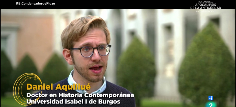 12 de enero de 2024. Conducido por la periodista Raquel Martos, el primer programa de la cuarta temporada de ‘El Condensador de Fluzo’, un programa de divulgación histórica emitido por La 2 de RTVE, contó con la colaboración en uno de sus reportajes con el profesor Daniel Aquillué, docente del Grado en Historia, Geografía e Historia del Arte de la Universidad Isabel I. El programa titulado “Después de la tormenta” o grandes batallas III realizó como es habitual, varios saltos en el tiempo histórico para hablar de momentos de la historia en los que se abordaron las consecuencias de las guerras.