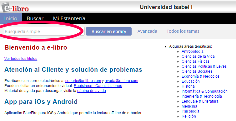 Entonces llegarás a la web de e-libro y podrás buscar los títulos que te recomienden tus profesores o descubrir otros que te interesen.