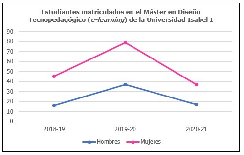 Gráfico 2. Estudiantes matriculados en el Máster en Diseño Tecnopedagógico (e-learning) de la Universidad Isabel I. Fuente de los datos: Universidad Isabel I.