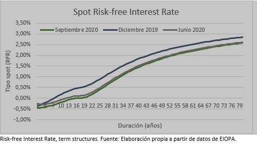 En el campo financiero y asegurador, el tipo de interés es una de las variables más importantes para la valoración de activos y pasivos. Desde la crisis financiero del 2009 el tipo de interés está sufriendo importantes descensos, continuados año tras año, en su curva spot hasta niveles nunca vistos anteriormente. La situación actual, que viene produciéndose desde hace unos dos años, es de una curva de tipos spot negativa para gran parte de las duraciones más comunes (inferiores a los 20 años) en la valoración de operaciones financieras (ver siguiente Figura).