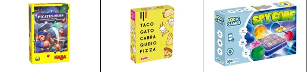 Picatesoros - HABA; Taco, gato, cabra - Lúdilo; Spy Code - Átomo.