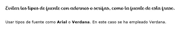 Recomendación de utilizar textos sin serifas o adornos para mejorar la usabilidad y accesibilidad.
