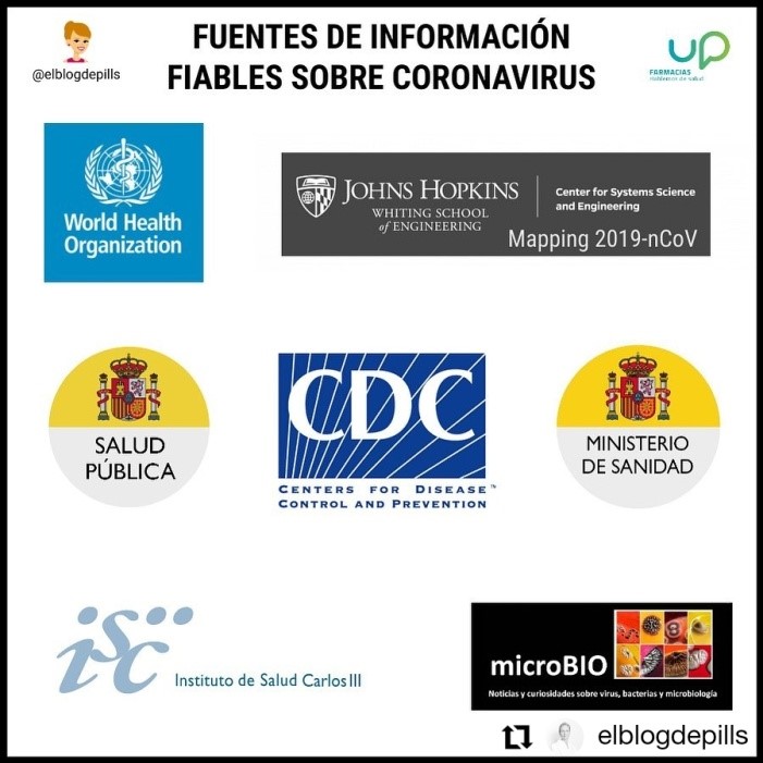 - Virtu Roig (@elblogdepils) [Infografía] [Twitter] Fuentes de información fiables sobre el coronavirus Twitter [Internet]. [consultado 28 febrero 2020]. Disponible en: https://twitter.com/elblogdepills/status/1232755939775860736