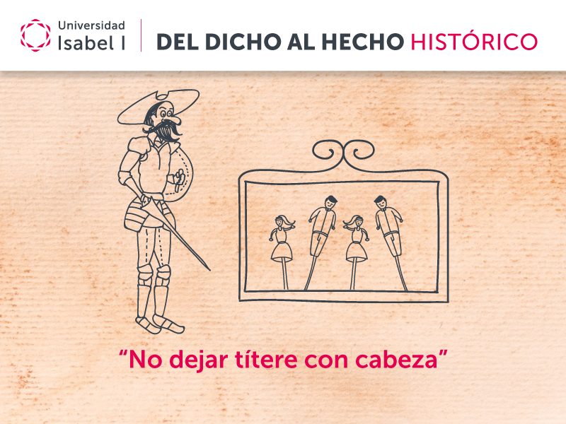 Para encontrar el origen etimológico de la expresión «no dejar títere con cabeza», debemos acudir a esa obra cumbre de la narrativa en castellano, fuente importantísima de aportaciones a nuestra lengua, que es Don Quijote de la Mancha, escrita en dos partes por Miguel de Cervantes Saavedra, una primera en el año 1605 y otra posterior que data de 1615.