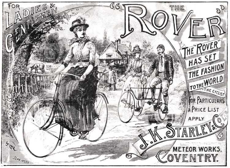 En la década de 1880 la iniciativa se trasladó a Gran Bretaña, donde pronto se buscaron mecanismos para optimizar el desplazamiento de este vehículo sometiéndole a diferentes transformaciones que le hicieron evolucionar hacia varios modelos. Fue concretamente en Coventry, un área industrial puntera de Inglaterra, donde John Kemp Starley construyó la Rover, una bicicleta de seguridad que presentó un nuevo concepto de bicicleta: dos ruedas del mismo diámetro con radios metálicos, cuadro geométrico fijado a un manillar y pedal ligado a cadena de piñón fijo sobre rueda trasera (Emptoz, 2003: 56).