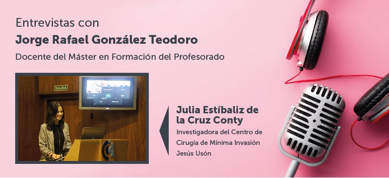 Jorge Rafael González, docente del Máster en Formación del Profesorado, entrevista a Julia Estíbaliz de la Cruz Conty, investigadora del Centro de Cirugía de Mínima Invasión Jesús Usón. Este centro es una institución multidisciplinar dedicada a la investigación, formación e innovación en el ámbito sanitario. Está especializada en Laparoscopia, Endoscopia, Microcirugía, Diagnóstico y Terapéutica Endoluminal, Anestesiología, Farmacología, Bioingeniería y Tecnologías Sanitarias, Terapia Celular y Reproducción Asistida. Julia Estíbaliz de la Cruz centra su trabajo en la investigación de una nueva generación de stents ureterales biodegradables.