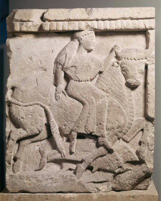Relieve del rapto de Europa procedente de Selinunte (templo Y). Museo Regional Antonio Salinas de Palermo (Sicilia). Siglo VII a.C. Fotografía autor.