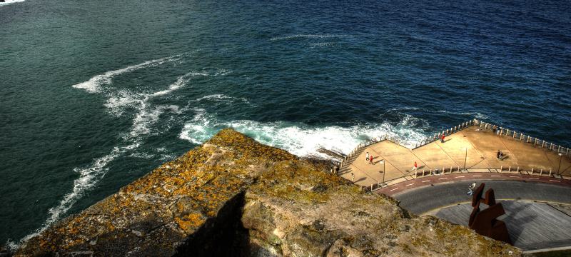 Peine de los vientos (E. Chillida). Escultura pensada ad-hoc para este espacio espectacular. Una escultura monumental hecha en hierro y que va variando a medida que el tiempo afecta a la obra así como el mar.