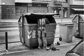 Hombre con camiseta de fútbol buscando comida en la basura en España. 2012. Fuente: Ámbitos