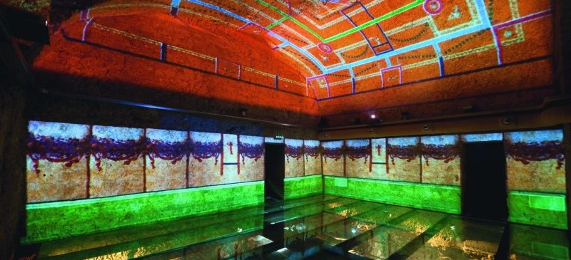 Videomapping de la pintura mural de las domus romanas de Palazzo Valentini. Fuente: Roma. Sito Turistico Ufficiale.