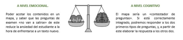 Y visto esto, podemos entender que un mapa conceptual que ilumine o haga públicos todos los contenidos y relaciones de un texto puede ser beneficioso para el estudiante a varios niveles:
