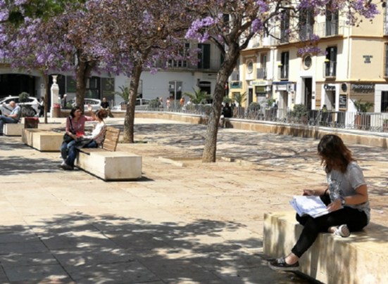Bancos en la plaza de la Merced de Málaga. Fuente: elaboración propia.