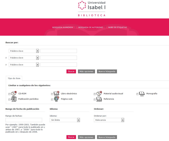 La biblioteca de la Universidad Isabel I, cumpliendo su función educativa, ofrece una gran variedad de recursos orientados a apoyar a los alumnos en el desarrollo de sus distintas actividades académicas, ayudando y facilitando el acceso, la gestión y el manejo de la información. Este medio ofrece diferentes bases de datos, las cuales permiten al alumno acceder a libros, publicaciones, revistas, artículos, etc. de diferentes áreas de conocimiento, que serán de gran ayuda para su proceso de aprendizaje.