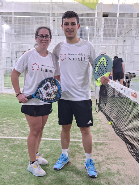 Laia Gasulla y Alfonso Delgado, pareja de pádel mixto que obtuvo la 3º posición en el triangular final. Estudian Grado en Educación Infantil y Máster en Formación del Profesorado.