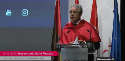 Durante su intervención, José Antonio Gaite Pindado, secretario general de la Universidad Isabel I, expuso la memoria académica del curso 21/22, repasando los principales hitos académicos del último año. El Secretario General recalcó que el nuevo curso se afronta “plagado de nuevos retos, proyectos y avances para el futuro”, resaltando las novedades que trae este décimo aniversario, como el nombramiento del primer Doctor Honoris Causa por la Universidad Isabel I, en la figura del magistrado Javier Delgado Barrio, o el proceso de internacionalización de la universidad, que ha ampliado sus convenios de colaboración con 6 instituciones de América Latina.