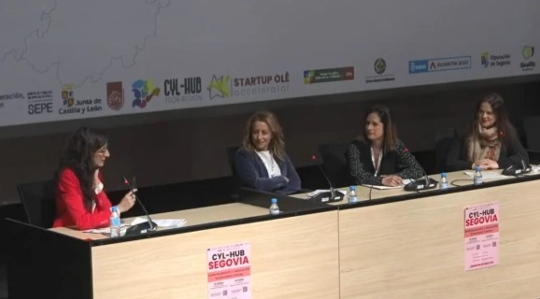 Las ponentes de la mesa de emprendimiento junto al director del CYL-HUB, Emilio Corchado.