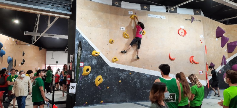 16 de mayo de 2022. Ana de la Fuente Torre, alumna del Máster en Neurociencia y Educación y Docente en el Técnico Superior de Enseñanza y Animación Sociodeportiva (TEAS), competía este sábado en el Campeonato de España Universitario de Escalada y ha conseguido la décima posición al completar 9 bloques y 12 zonas en los 20 bloques necesarios para alcanzar la clasificación en la competición.