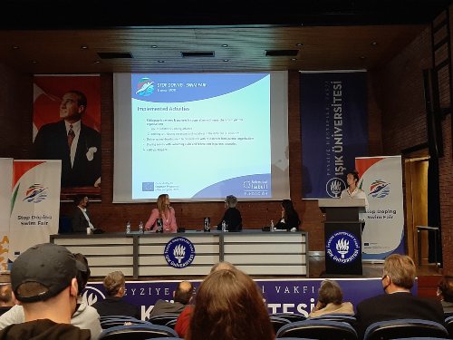 27 de septiembre de 2021. Ana de la Fuente y Ángela Román, dos de las profesoras de Formación Profesional en Técnico Superior en Enseñanza y Animación Sociodeportiva (TEAS, antiguo TAFAD) de la Universidad Isabel I, han participado en el proyecto europeo ‘Stop doping, Swim Fair’ que se celebró la semana pasada en Estambul (Turquía). Al encuentro también ha acudido Anna J. Münch, representando a la Fundación Universidad Isabel I como responsable del programa europeo en la Fundación de la Universidad Isabel I.