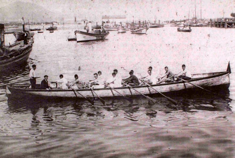 Postal que muestra a los remeros de Santoña en los 1920. Anónima.