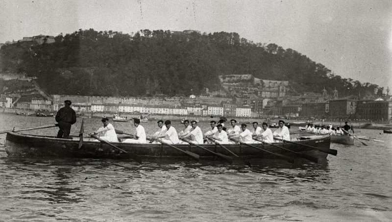 Trainera antes de darse la salida en la bahía de La Concha (San Sebastián) en 1915. Fuente: www.Kutxateka.eus.