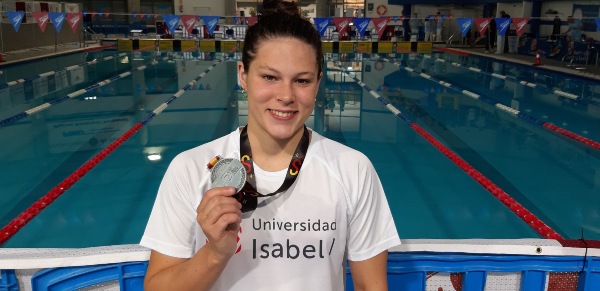 2 de mayo de 2023. La alumna del Grado en Nutrición Humana y Dietética, Ángela Martínez Guillén, ha logrado subirse al pódium en tres ocasiones en el Campeonato de España Universitario de Natación 2023, que se ha disputado en Valladolid este fin de semana. La actual Campeona de España en la prueba de 800 metros ha vuelto a conseguir el oro con un tiempo de 8:35:63. En la prueba de 400 metros se ha alzado con la medalla de plata y en la de 200 metros ha conseguido el bronce. La nadadora ilicitana ha competido en las tres pruebas por la Universidad Isabel I.