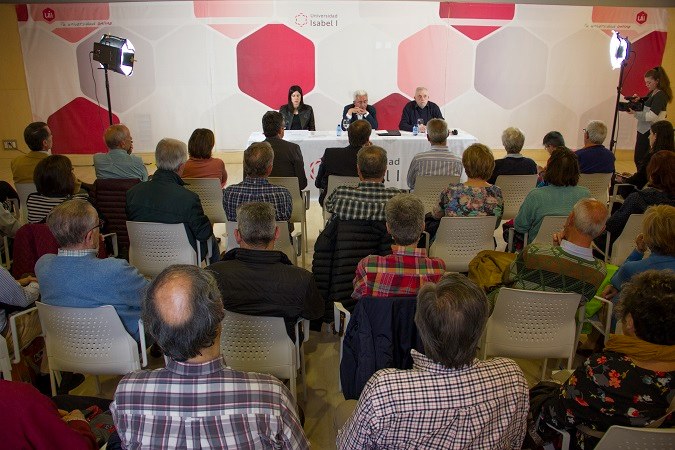 Juan Carlos Aparicio (i.) y Octavio Granado durante la charla coloquio celebrada en la Universidad Isabel I.