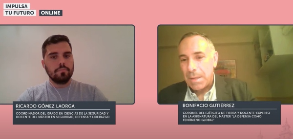 De la mano Ricardo Gómez Laorga, coordinador del Grado en Ciencias de la Seguridad y moderador del webinar, intervino en la presentación Bonifacio Gutiérrez, Coronel del Ejército de Tierra y Docente-Experto del Máster en Seguridad, Defensa y Liderazgo, quien compartió con los espectadores sus impresiones sobre las estrategias que realizan la ONU y la Unión Europea en la Zona Gris.