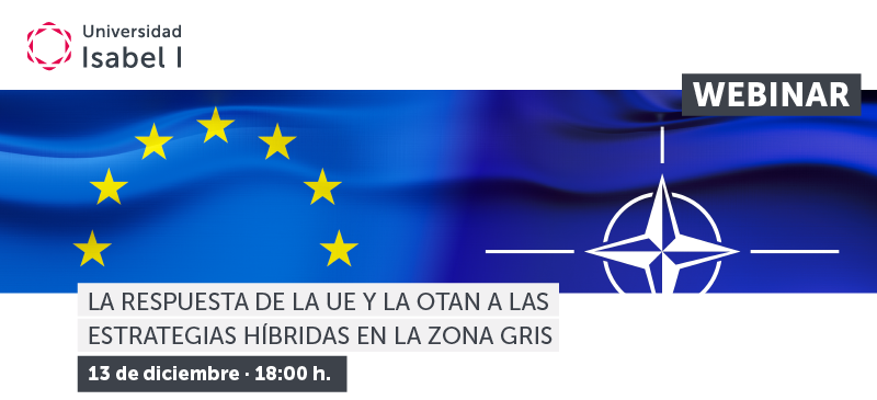 14 de diciembre de 2022. La Facultad de Criminología de la Universidad Isabel I presentó el webinar ‘Respuestas de la UE y la OTAN a las estrategias híbridas de la Zona Gris’, que acercó a todos los interesados en la materia cómo las organizaciones, especialmente la OTAN y la Unión Europea, combaten las estrategias híbridas de ese escenario bélico dónde no existe un enfrentamiento declarado entre contendientes, pero sí una sintomatología propia de antagonismo.