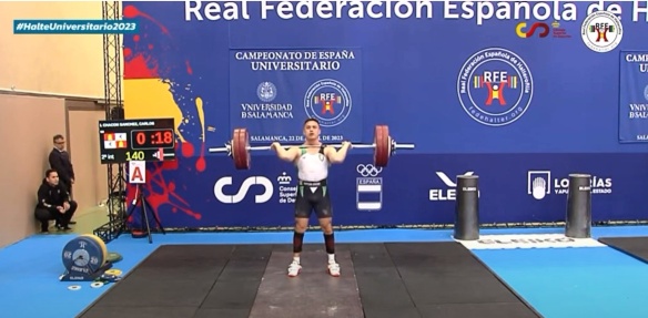 24 de abril de 2023. El alumno del Grado en Psicología, Carlos Andrés Chacón, se ha colgado este fin se semana la medalla de oro en el Campeonato de España Universitario 2023 de Halterofilia que se ha disputado en Salamanca. El estudiante de la Universidad Isabel I competía en la categoría de menos 73 kilos. Se ha alzado con la medalla levantando un total de 240 kilos, con una arrancada de 100 kilos más dos tiempos 140 kilos. Además de campeón en su categoría, quedó 4º en la competición.