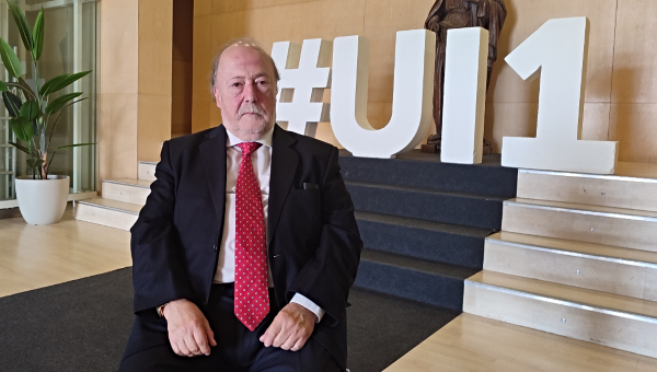 El profesor Molina del Pozo durante la entrevista en la Universidad Isabel I.