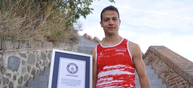 El primer registro de Cristian López en esta publicación se remonta al 2017, año en el que se convirtió en el primer ser humano en subir el mayor número de escalones en una hora, con un total de 6.765 peldaños. Desde aquel momento no ha parado de acumular récords Guinness a pesar de ser diabético desde los 12 años, lo que es un hándicap añadido al esfuerzo que realiza. En la Universidad Isabel I docente de la asignatura de Actividad Física y Discapacidad Psíquica.
