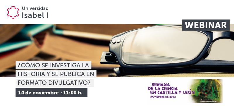 Carátula del webinar sobre cómo se investiga la historia y se publica en formato divulgativo.