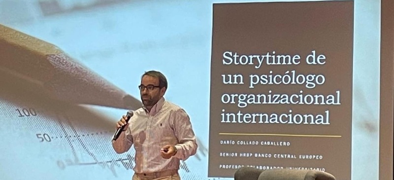 25 de agosto de 2022. Bajo el título ‘Storytime de un psicólogo organizacional internacional’, el profesor Darío Collado Caballero, docente del Máster en Dirección de Recursos Humanos ofreció una charla en la Universidad Anáhuac Puebla de México. El experto en recursos humanos que vive en Alemania aprovechó sus vacaciones en el país mexicano para compartir su historia personal y experiencias como psicólogo organizacional a lo largo de su trayectoria profesional en España y Alemania.