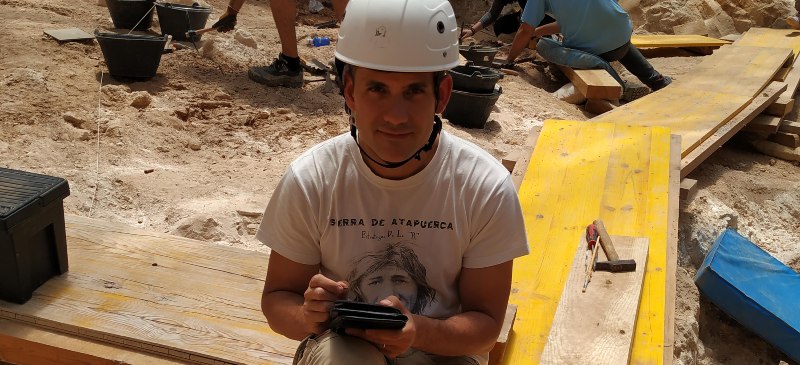 Diego Arceredillo en el yacimiento arqueológico de Atapuerca. Imagen cedida por Susana Santamaría.