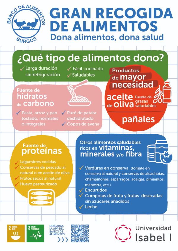 Como novedad de este año, la Universidad Isabel I colabora con el Banco de Alimentos de Burgos bajo el lema ‘Dona alimentos, dona salud’, dando así un salto cualitativo en el ámbito de la recogida saludable.