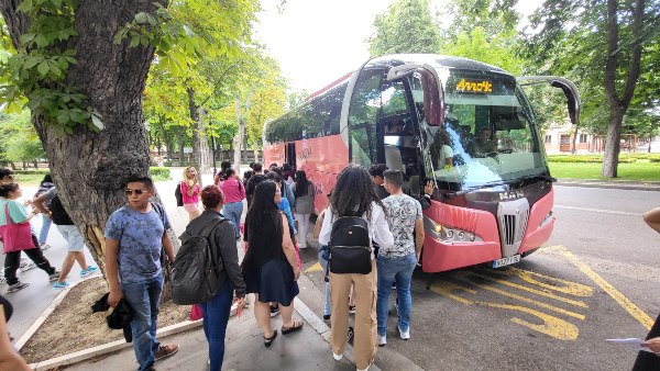 Subida al autobús para una de las visitas culturales.