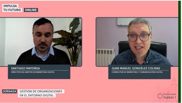 6 de mayo de 2022. El último de los bloques de las Jornadas científicas de la Gestión de Organizaciones en el Entorno Digital ha correspondido al Máster en Marketing Digital, que dirige Santiago Mayorga Escalada, exponiendo la relevancia que ha tenido el marketing en el entorno digital al proliferar herramientas digitales. El marketing digital ha permitido la democratización del sector y han ampliado los límites de las empresas en el entorno tradicional.