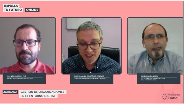 El bloque temático abordó la necesidad del marketing en el entorno digital: sector, profesionales, marcas y usuarios, en el que participaron Santiago Mayorga, Vicente Badenes, Juanma González Colinas y Luis Miguel Garay Gallastegui, docentes del Máster en Marketing Digital. En ellos analizaron los escenarios híbridos (marketing on y off line), ya que como señaló Luis Miguel Garay, estamos en un momento de cambio donde el cliente está modificando el escenario comercial y es necesario buscarlos en el entorno digital. La situación generada por la COVID ha acelerado necesidades que previamente se cubrían de forma latente, ya que es necesario replantearse dónde están los clientes. Un entorno online si no tiene tráfico es un recipiente vacío y lo que se busca siempre es generar más ventas, con un mayor tráfico al entorno digital y a las tiendas físicas.