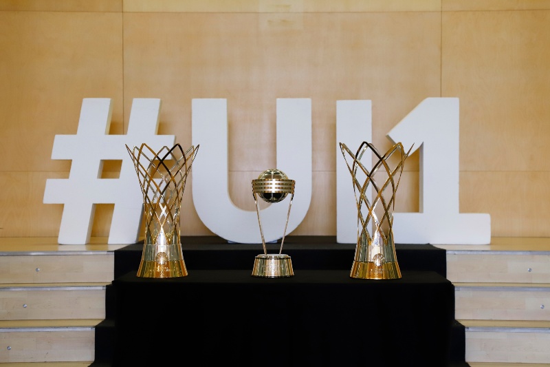 Las tres copas ganadas en esta temporada por el Hereda San Pablo Burgos en la sede de la Universidad Isabel I.