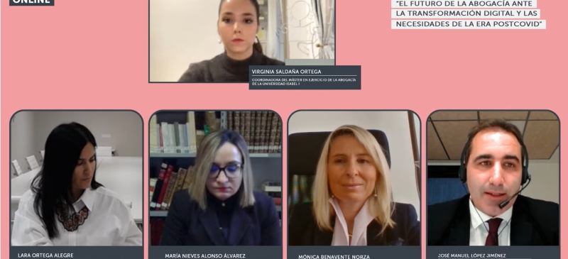 De la mano de Virginia Saldaña, Coordinadora del Máster en Ejercicio de la Abogacía y moderadora del webinar, intervinieron durante la presentación María Nieves Alonso, autora de un capítulo del libro; Mónica Benavente, profesora del Máster en Asesoría Jurídica de Empresas y autora de otro capítulo; Lara Ortega, Directora del Máster en Ejercicio de la Abogacía; Susana Santos, representante de la Fundación Mutualidad de la Abogacía y José Manuel López, Decano de la Facultad de Ciencias Jurídicas y Económicas de la Universidad Isabel I, quienes compartieron con los espectadores sus impresiones sobre la actualidad de la monografía presentada y el contenido de la misma.