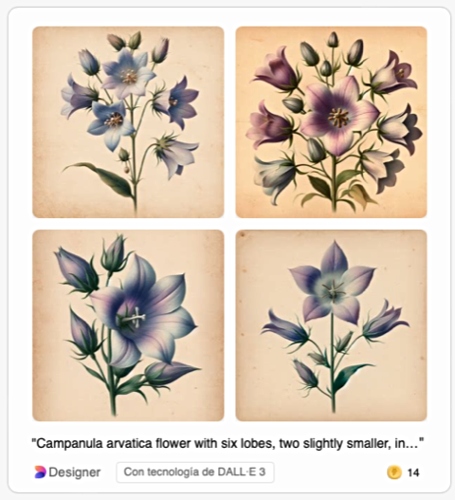 Bayón parte de una premisa simple: ilustrar un artículo divulgativo sobre la Campanula arvatica, una planta endémica del norte de España con una mutación rara en sus flores. Su objetivo es comprobar si una IAG, en este caso Copilot con tecnología DALL·E 3, es capaz de generar ilustraciones para una publicación científica.