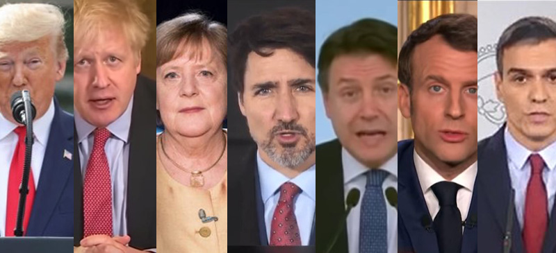 En el primer semestre de 2020, la pandemia del COVID-19 se cobró 472000 víctimas, lo que obligó a los presidentes y primeros ministros de todo el mundo a buscar una solución para atajar una crisis sanitaria sin precedentes. Y todos ellos se dirigieron a la población para explicar las medidas adoptadas en la gestión sanitaria. Las respuestas fueron muy diversas: Boris Johnson (Reino Unido) permaneció en un segundo plano, afectado por la enfermedad; Donald Trump (Estados Unidos) fue negacionista en las primeras etapas; Pedro Sánchez (España) o Giuseppe Conte (Italia) se expusieron más a los medios de comunicación.