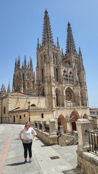 Erika frente a la fachada principal de la Catedral de Burgos.