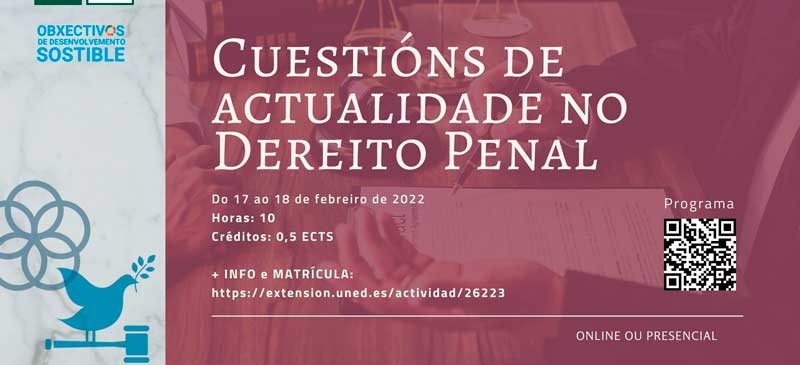 22 de febrero de 2022. Fernando Pinto Palacios, profesor del Grado en Derecho, el Grado en Criminología y el Máster en Ejercicio de la Abogacía de la Universidad Isabel I, ha ofrecido una conferencia sobre la prisión permanente revisable en un curso de la UNED de Lugo. El docente de la Universidad Isabel I es magistrado, doctor en Derecho y actualmente desempeña la función de Letrado del Gabinete Técnico del Tribunal Supremo (Área Penal).