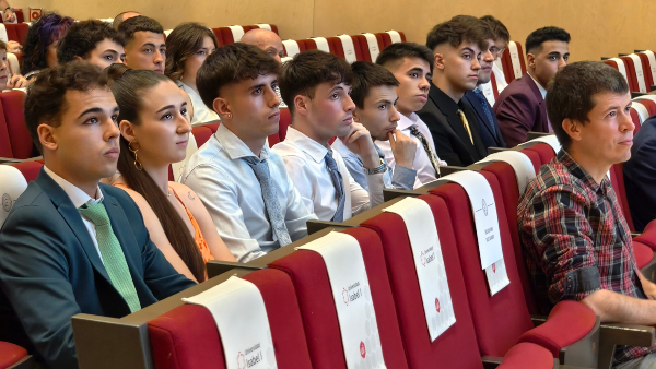 Los alumnos, atentos a los discursos antes de subir a recibir su beca.