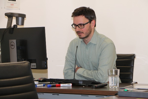 El profesor Jorge Magdaleno en una de sus clases magistrales en su estancia en Chipre.