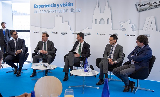 Tras la ponencia del presidente de Telefónica España, tuvo lugar una mesa redonda en la que participaron Alberto Gómez Barahona, rector de la Universidad Isabel I, Alfonso Ayuso, director de Innovación Tecnológica de Banco de Sabadell, Félix Sancho, presidente del Club Baloncesto San Pablo Burgos de la liga ACB, y el bodeguero David Sebastián.
