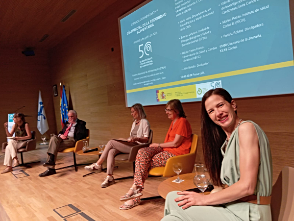 10 de junio de 2024. Con motivo del 50 aniversario del Centro Nacional de Alimentación (CNA), se celebró una jornada conmemorativa por el Día Mundial de la Seguridad Alimentaria, organizada por la Agencia Española de Seguridad Alimentaria y Nutrición (AESAN). El evento contó con la presencia de destacados expertos en nutrición y salud, incluyendo a la profesora y divulgadora científica Beatriz Robles del Grado en Nutrición Humana y Dietética.