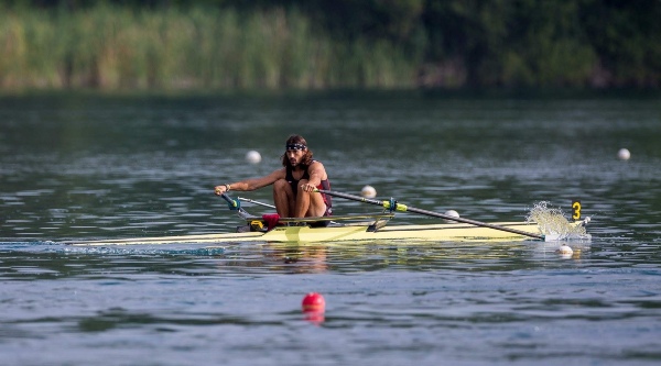 En esta prueba competían los tres mejores de cada continente, y yo estaba entre los tres mejores de Europa. En el clasificatorio de Europa, estaba primero el italiano Giovanni Ficara con 1:22:07; segundo yo, con 1:22:08; y tercero, al que gané, el egipcio Mohamed Kota, que hizo un tiempo de 1:22:09. Fue una prueba muy ajustada, en la que quedé segundo por una sola décima. Preferí quedarme para remar en las mismas condiciones que los demás, y, la verdad, me salió bien. La competición fue muy intensa. Yo iba primero durante toda la regata, pero el italiano me pasó en los últimos 10 metros.